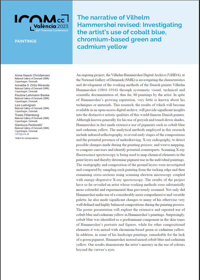 The narrative of Vilhelm Hammershøi revised. Investigating the artist’s use of cobalt blue, chromium-based green and cadmium yellow. / Haack Christensen, Anne; Ortiz Miranda, Annette Suleika ; Ludvigsen, Loa Lehmann Banke, Pauline et al. 2023. 178.